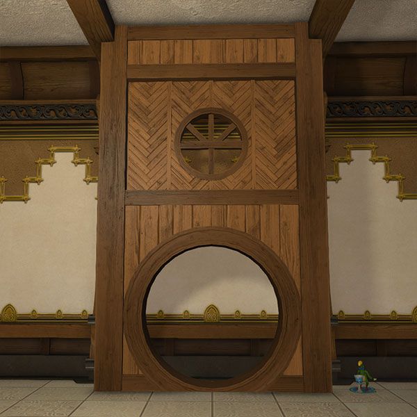 Das warme Holz umfasst ein großes Bullauge, das ohne Weiteres als Durchgang genutzt werden kann. Urig und gemütlich!