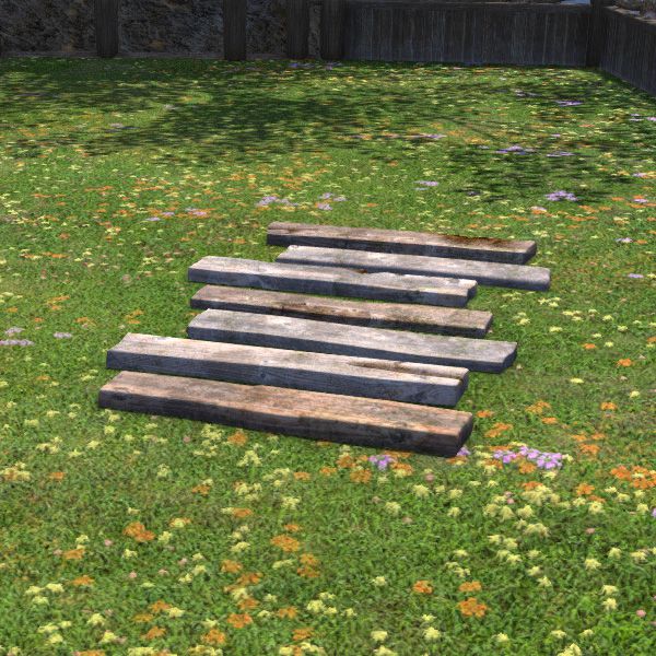 Ehemalige Eisenbahnschwellen, welche zur Wiederverwendung als Trittbretter aufbereitet wurden.