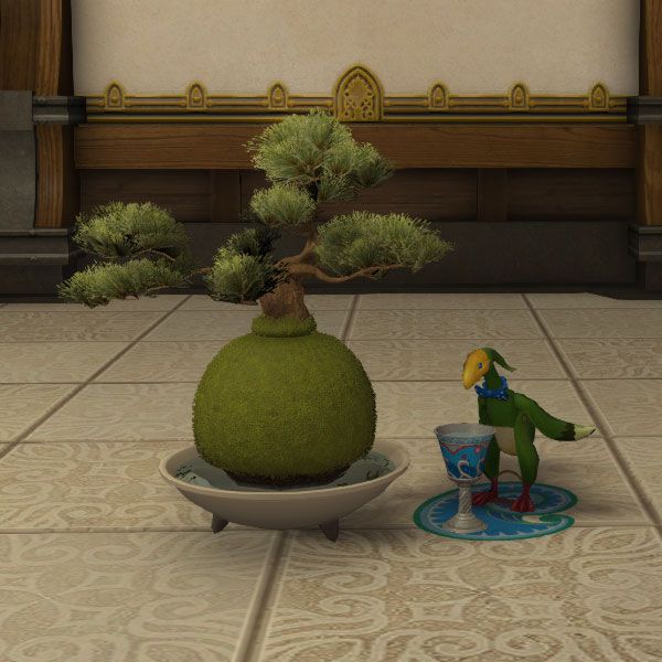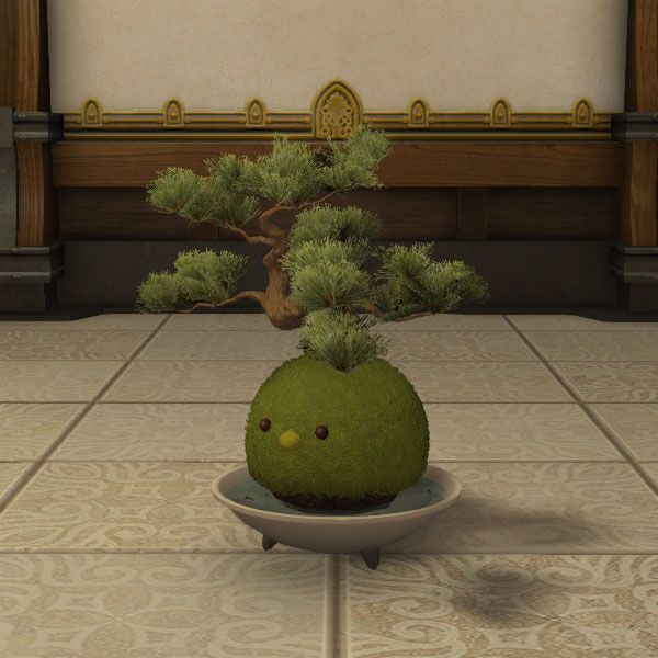 Eine überwiegend aus Moos bestehende Topfpflanze, deren Form einem Korpokkur nachempfunden ist.