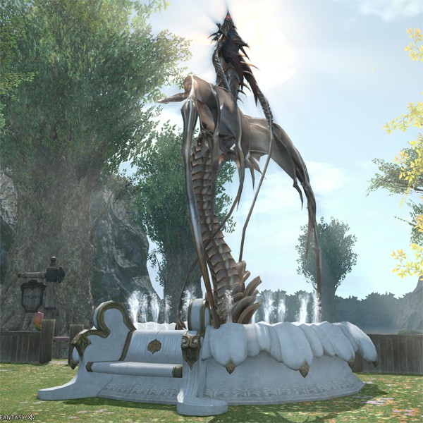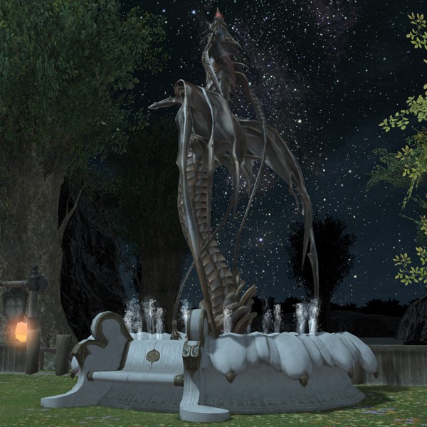 Ein sahaginisch säuselnder Springbrunnen, in den eine Finnenspitze Leviathans eingearbeitet wurde. (Kann nicht ins Inventar zurückgelegt werden. Nur einer pro Anwesen möglich.)
