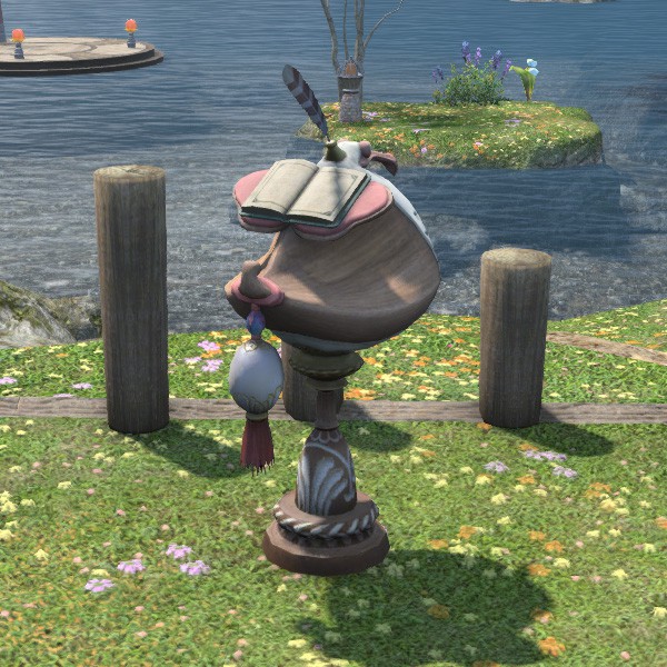 Ein als Dodo dargestelltes Pult für das Diarium der Unterkunft. (Nur eins pro Anwesen möglich.)