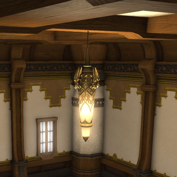 Eine Deckenbeleuchtung für eine Unterkunft coerthischer Bauart.