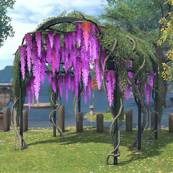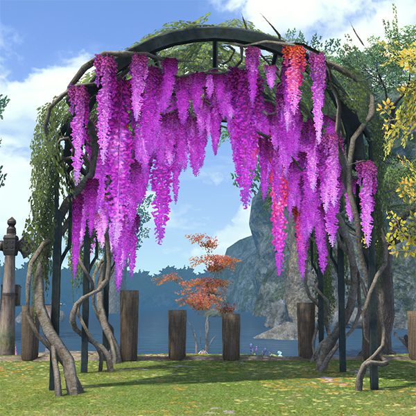 Ein mit Blumen bewachsener Torbogen, wie man ihn in Dohn Mheg vorfindet.