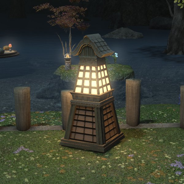 Eine für Hingashi typische Gartenlaterne aus Holz und Papier.