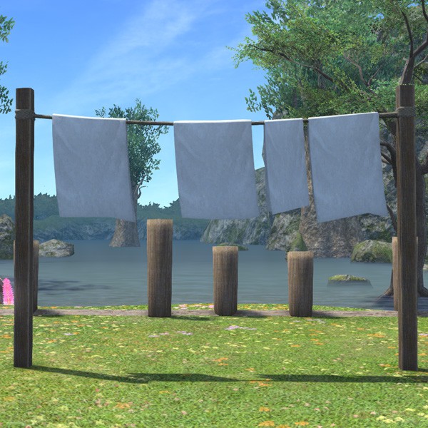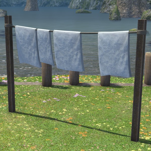 Zwei hölzerne Pfähle mit einem dazwischen gespannten Seil. Die Urform des Wäschegestells.