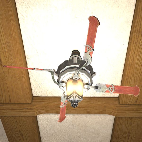 Eine vom Mahlstrom ausgegebene Deckenlampe, die nicht nur leuchtet, sondern auch frische Luft zufächelt. Für patriotische Entspannung in angenehmem Raumklima.